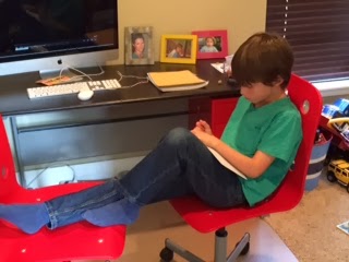 We had a couple days off from school last week & it was very quiet downstairs, which often means trouble. When mom came down this time, I was sitting here writing a story in my journal & Caden was laying on the floor reading a book.