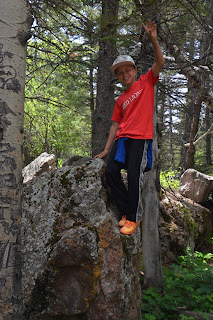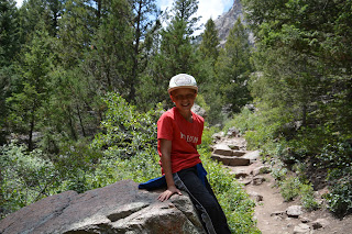 We went camping at Moraine Campground in Rocky Mountain National Park (our favorite place to camp). We went for a 7 mile hike up to Cub Lake via Fern Falls. It was an amazing day. We went with the Johnsons and the Wus. We of course had to climb every rock we encountered.