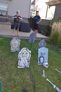 Mom and Dad wanted nothing to do with Halloween decorations this year, but Caden and I were determined to make it happen. Mom said if we wanted to do it, she’d get the decorations out for us. We are admiring our work and were pretty proud of what we did. We also enjoyed playing zombies in the graveyard.