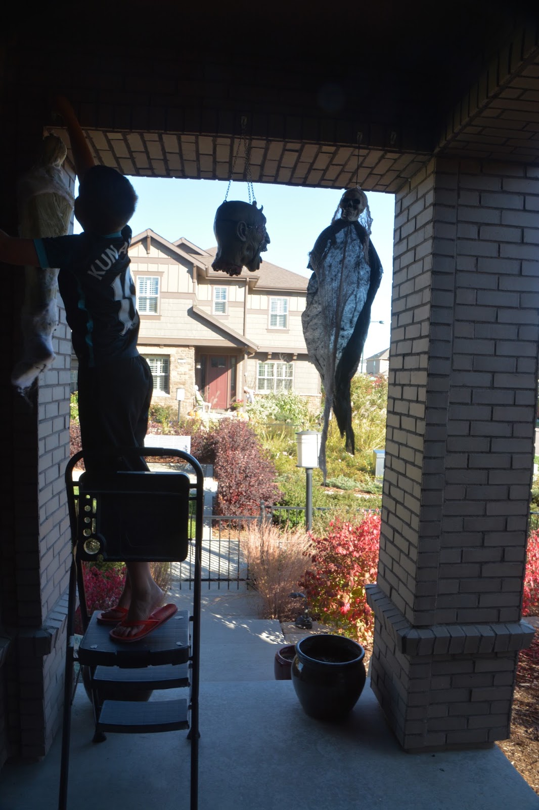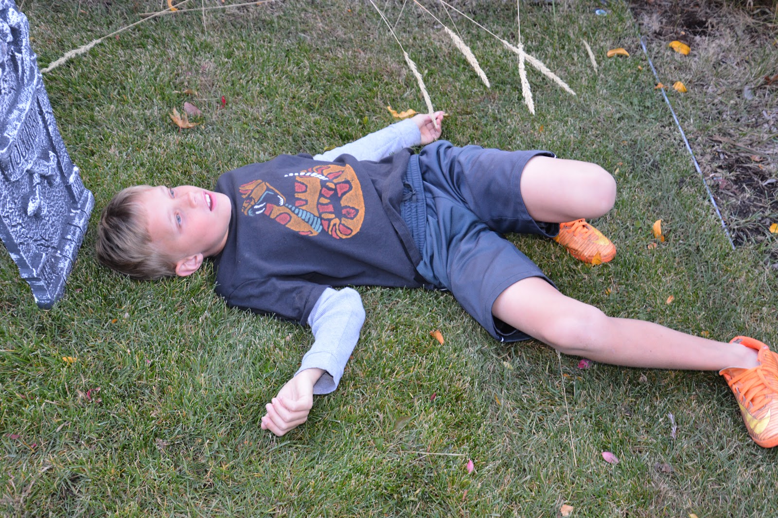 Mom and Dad wanted nothing to do with Halloween decorations this year, but Caden and I were determined to make it happen. Mom said if we wanted to do it, she’d get the decorations out for us. We are admiring our work and were pretty proud of what we did. We also enjoyed playing zombies in the graveyard.