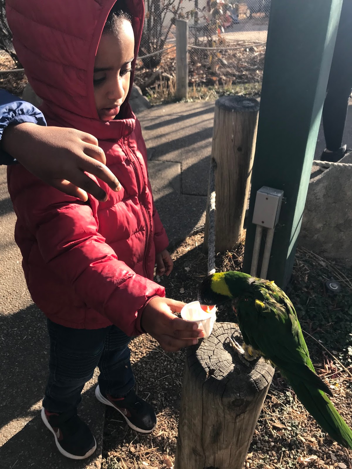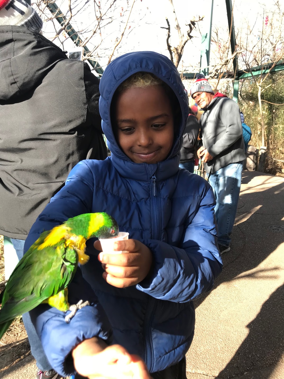 We fed the birds and they were hungry, which made it really fun. We all got a bird on our hand at some point.