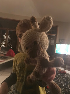 Mom made this little giraffe and gave it to Ryan. He was cuddling with it the whole break.