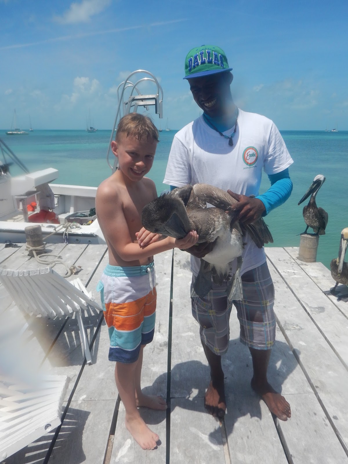 We then got back in the boat and headed to a dock with these pelicans. There were beautiful seahorses in the water, too, but the pictures don’t do them justice.