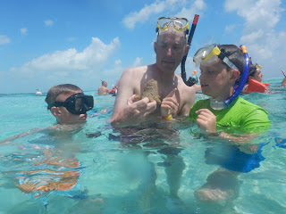 We found several Conch shells on the bottom of the ocean and they had different animals in them. This one had a crab of some sort.