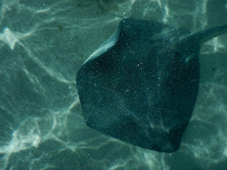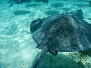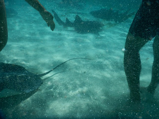 We jumped in the water and underneath the sharks were all these sting rays. They would swim right up to us and touch our legs. They were beautiful!