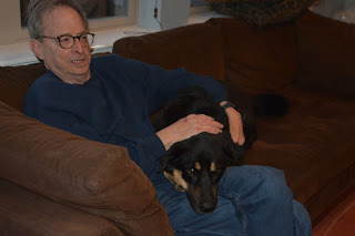 We found this picture on the camera from Papa and Grandma’s visit in March. Papa is enjoying cuddles with Higgins, who thinks he is a lapdog. The camera is broken and in the shop, unfortunately. We are hoping to get it back soon.