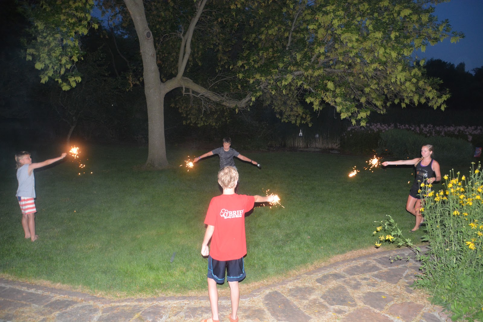 Pearson got to come out and play with the sparklers, too. Aunt Natalie was upstairs putting Ryan to bed.