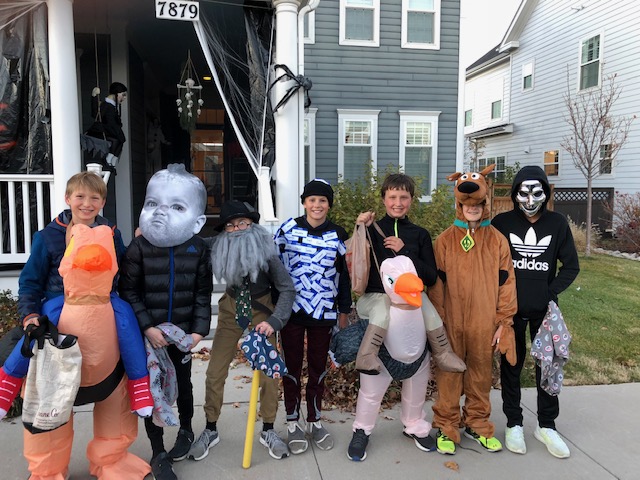 My friend Rowan’s mom took this picture of us before we ventured out to trick or treat. L-R: Anderson, Hayden, Tate, Grayson, me, Johnny, & Ro. We had a blast out on our own!