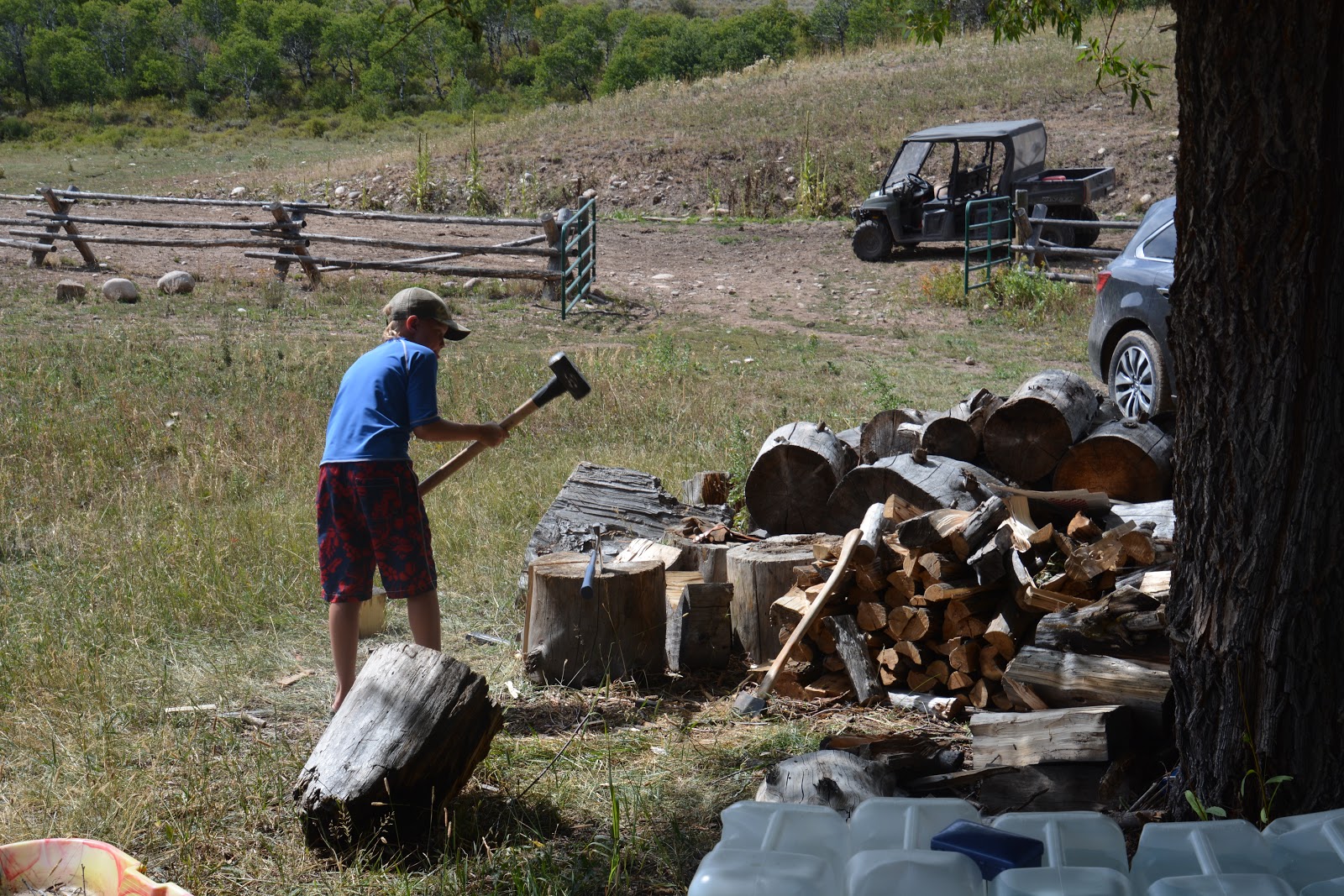 We enjoyed chopping wood with an axe (until a kid sliced the tip of his finger in half).