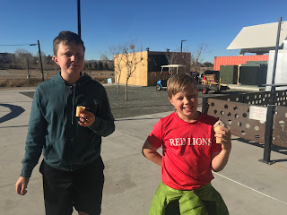 It’s been a pretty warm winter so far. We walked to Stanley the other day for ice cream!