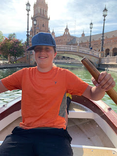 We went back to the Plaza de Espana and rented a boat. We all wanted our turn at steering. It was a little tricky with some of the other boats. It was a good thing Dad was with us.