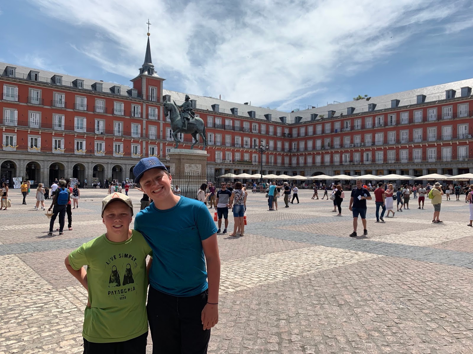 This is Plaza Mayor. It was half a block away from our apartment. Our apartment in Madrid was very interesting. It ended up working just fine, but the setup was bizarre. It was on the top and 8th floor. It had very slanted ceilings, to the point where we had to bend over to use the restroom.