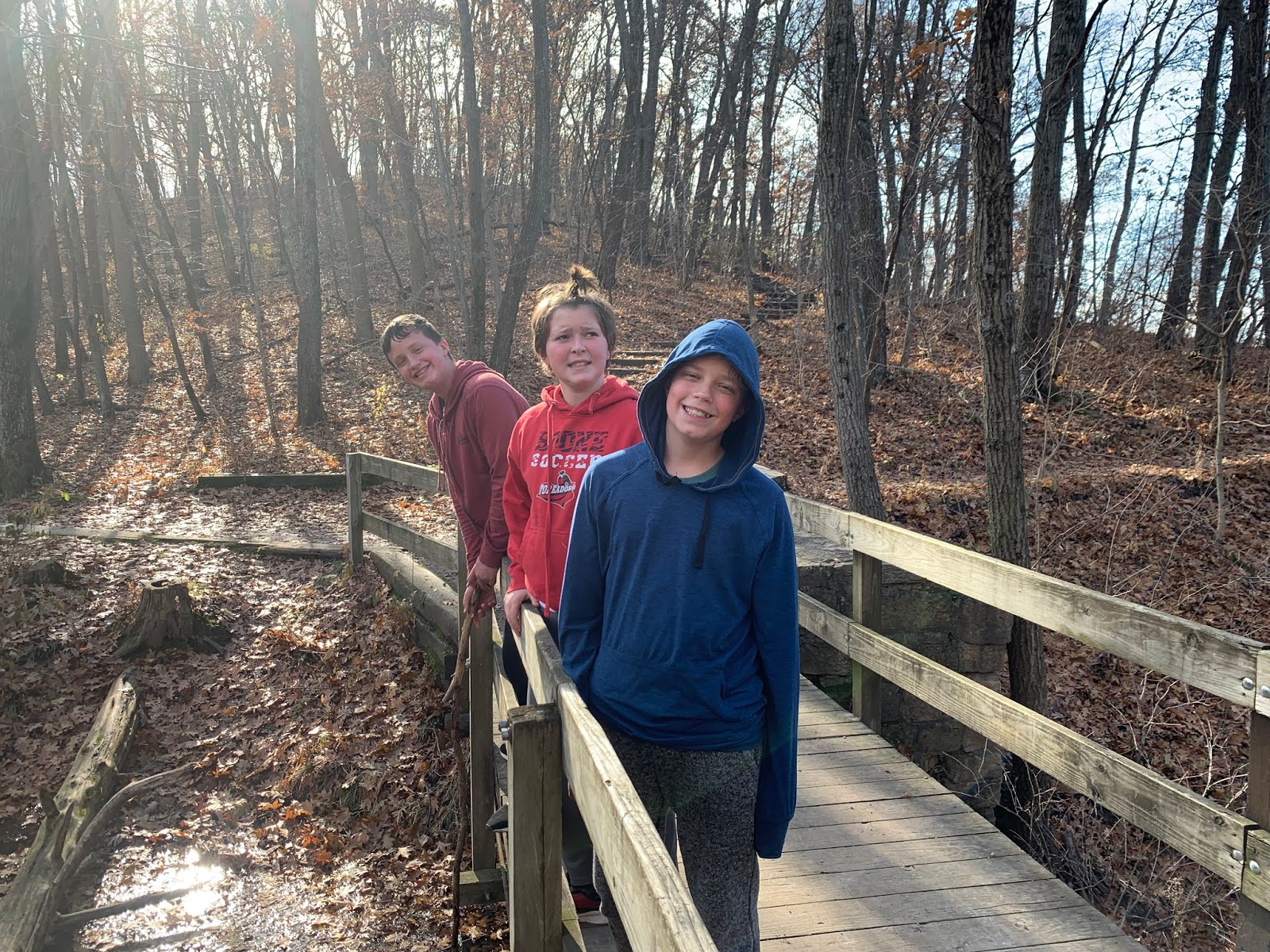 On Sunday, the weather was gorgeous, so we headed out to Ledges State Park for a hike. Natalie wasn’t able to come back yet, and Kelly and family had something else going on. We hiked Lost Lake hike. L-R: Marley, me (Wyatt), Hendrix, Carlee, Caden, Grandma, Isaac, Clara and Papa