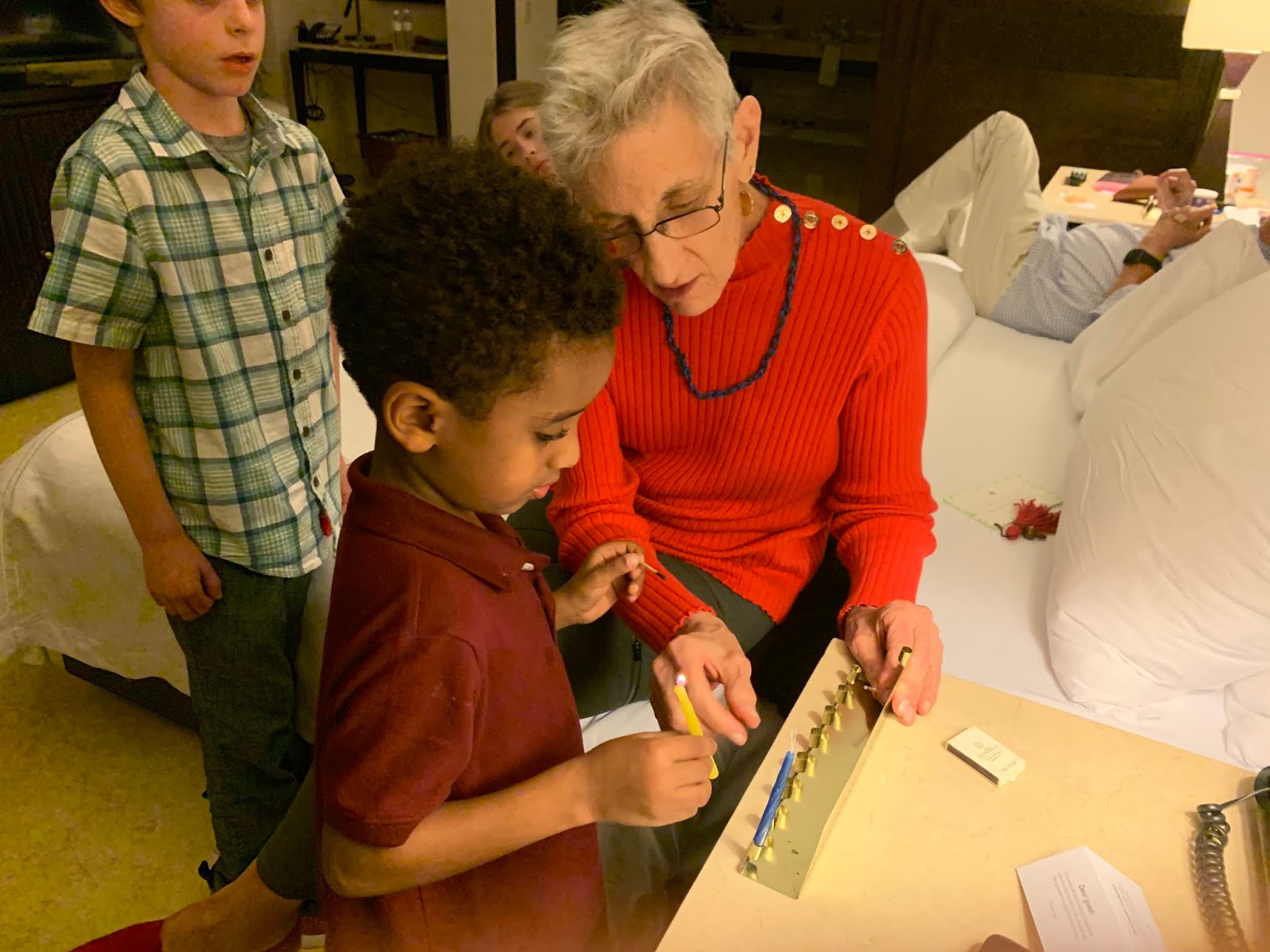 Chanukah started on Sunday night and Grandma brought a menorah. We each got a turn lighting the candles as we all said the prayer.
