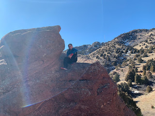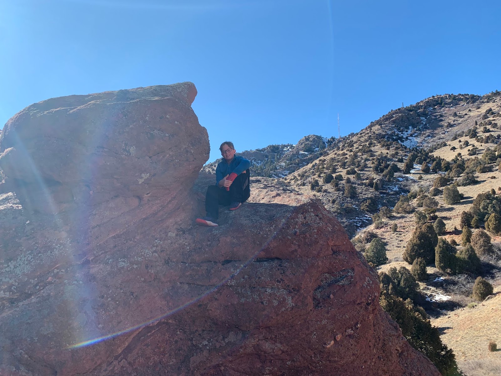 We went for a family hike the following weekend at Red Rocks. We did a 4 mile RT 800′ elevation gain. I enjoyed exploring and if you zoom in on this bottom photo, you can see me.