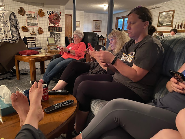 There was a tornado warning, so we ended up in the basement for a bit. Boys of course had to go outside and check it out.