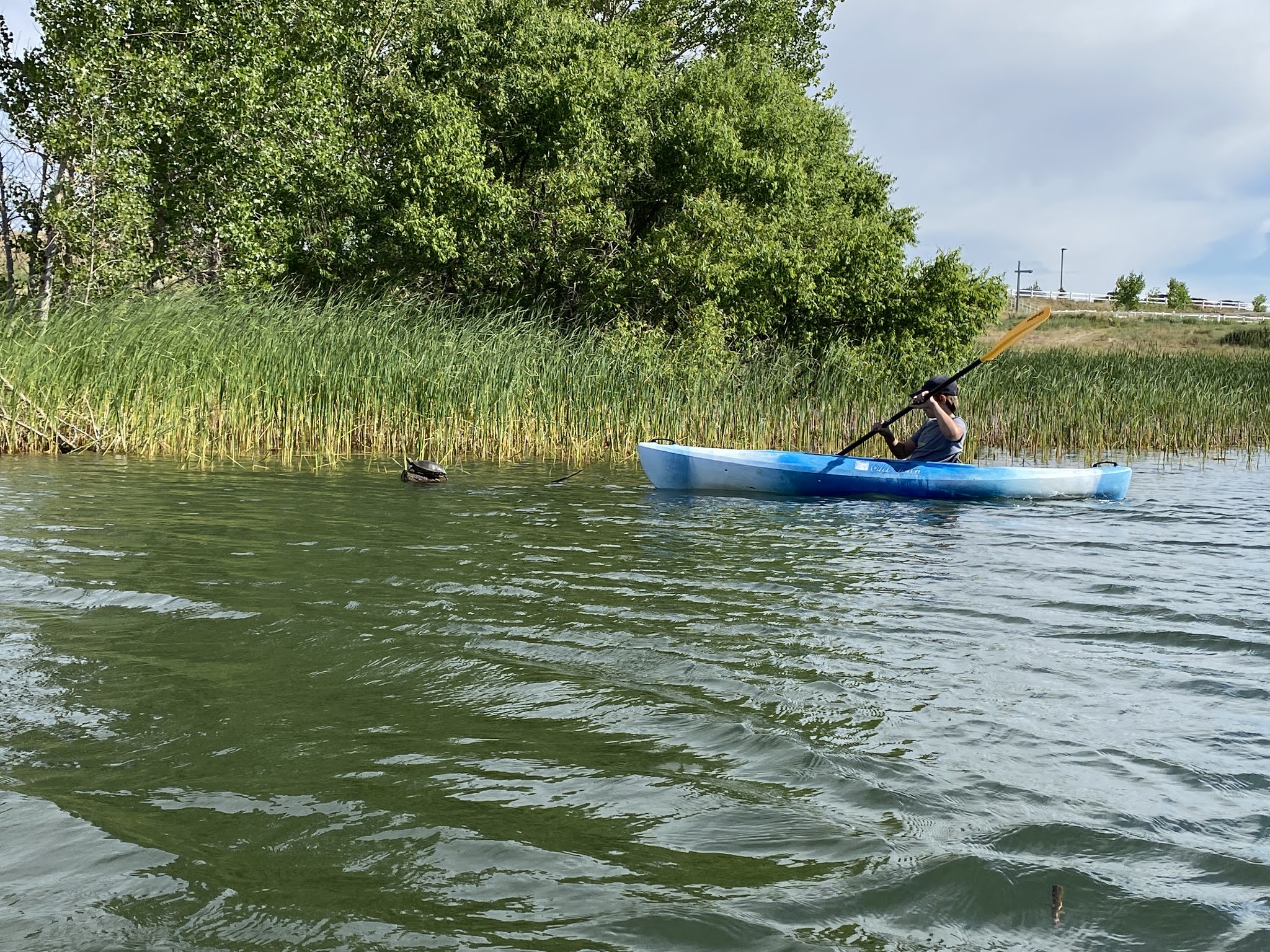 We have been taking turns going out on the water with Mom in kayaks. We went to Aurora res and ventured about. We found these turtles hanging out on a log, which we thought was pretty cool.
