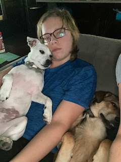 I like snuggling with the dogs on the couch, but I don’t usually want to sleep with them. Wyatt likes having Diesel sleep in his room. She cracks us up and Hurley is a sweetheart.