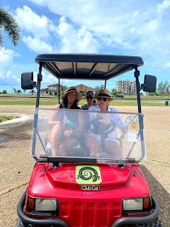 Meanwhile, Dad was walking around Belize looking like this and they were getting around the island on a golf cart.